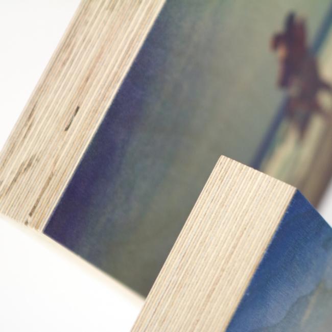 De foto wordt in hoge kwaliteit op een fotoblok geprint. De fotoblokken worden gemaakt van glad afgewerkt berkenplex. Ook de zijkanten van het blok zijn zo behandeld dat zij glad aanvoelen en geen noesten of andere oneffenheden bevatten.