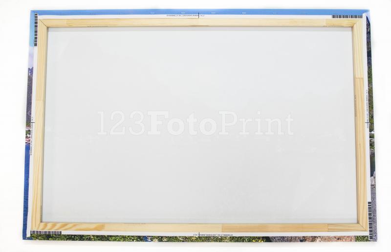 De canvas foto print wordt machinaal strak op het houten frame gespannen. Dit frame heeft een dikte van 18mm.