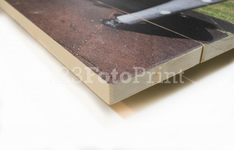 Een prachtige eyecatcher met een natuurlijke uitstraling en een levendige afdruk van je mooiste foto. Dat is een foto op hout. Dit product is in elke woonkamer of keuken een plaatje! Wij printen op geselecteerd vurenhout met een breedte van 10 cm en een dikte van 2 cm. Het hout wordt in de werkplaats tot panelen verwerkt. Tussen de planken zit een kleine naad; dit geeft een speels en landelijk effect. Hierna wordt je foto geprint op het houten paneel.
